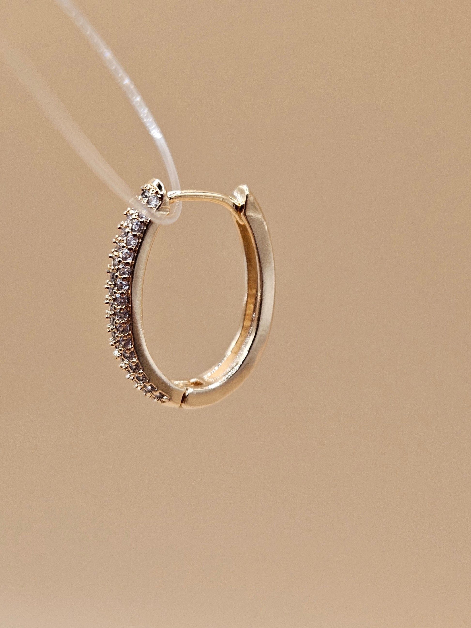 The Éclat Pavé Hoops capture the essence of quiet brilliance. Each curve is meticulously set with high-quality zirconia, reflecting light with a soft, refined sparkle. Their double 18k gold plating enhances the warm radiance, creating a piece that feels both modern and timeless — luminous enough for evening, delicate enough for every day.
