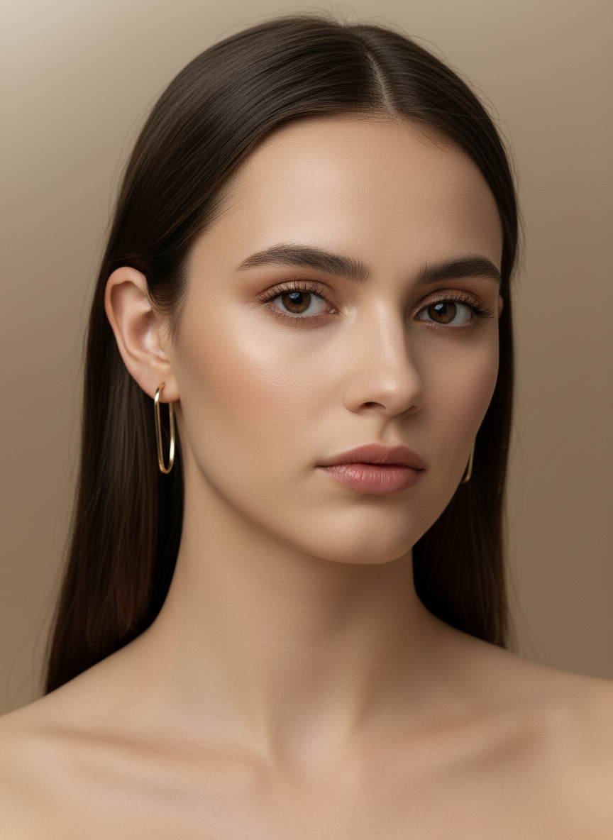 The Élise Hoop brings a clean golden shine that elevates any look — from everyday basics to evening styles.